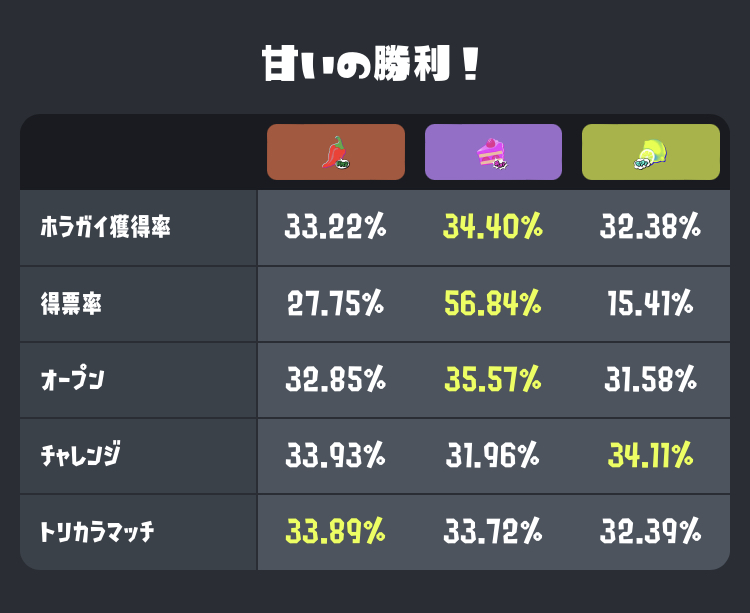 得票率の差がエグくて笑った。さすがにここまですっぱいが少ないとは思ってませんでした。