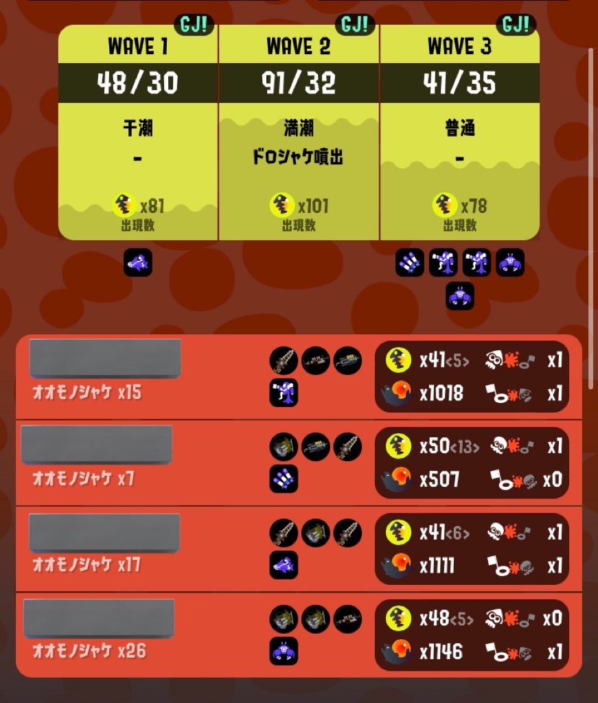 これは別の編成でですが、ドロシャケで91個納品できたりもして実に面白かった。笑いが止まりませんでした。